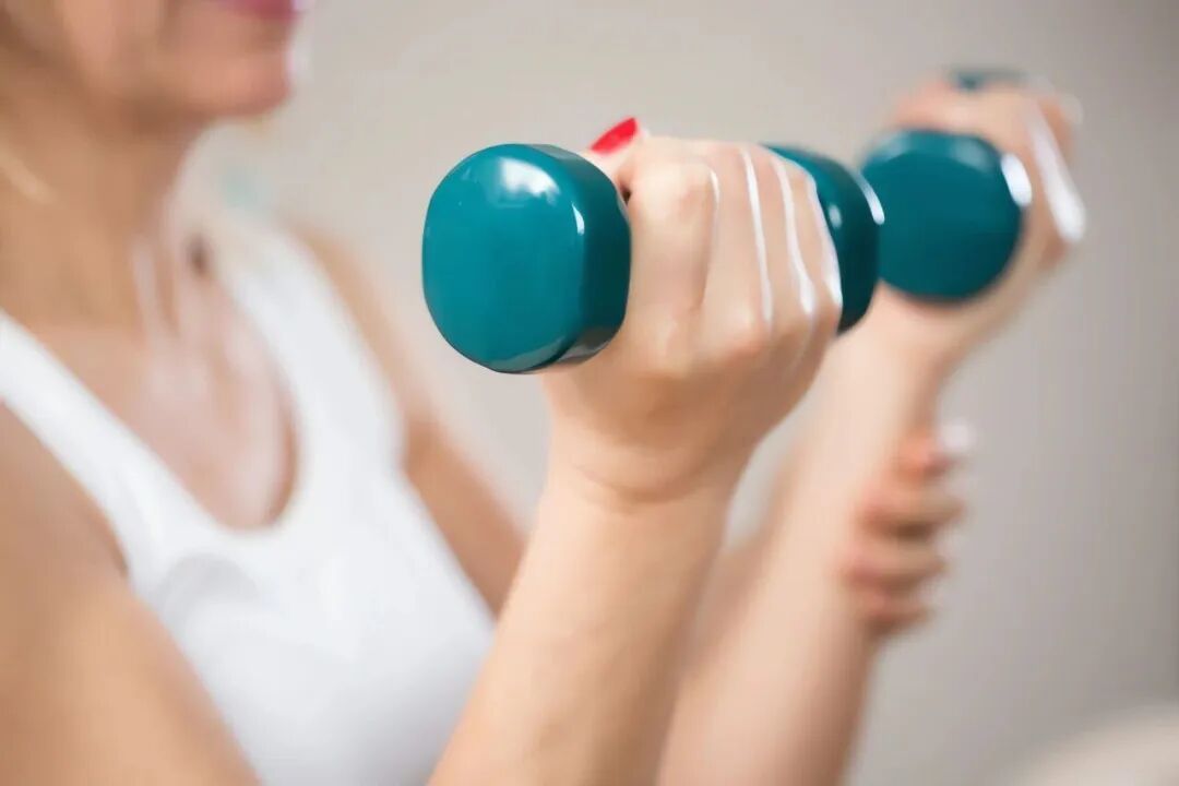 锻炼部位:肩部、手臂、握力好处:增强上肢功能,维持自理能力,改善心肺关联指标做法:手持矿泉水瓶等重物,缓慢上举、下放,每组 15~20 次。